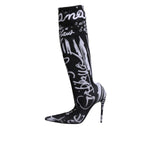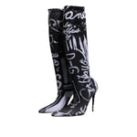 Dolce & Gabbana Black Logo Stretch Heels High Boots Shoes