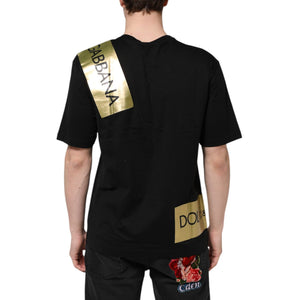Dolce & Gabbana Black Logo Tape Cotton Men Crew Neck T-shirt