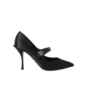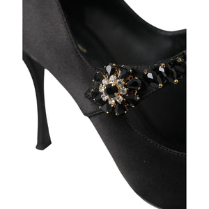 Dolce & Gabbana Black Mary Jane Crystal Heels Pumps Shoes