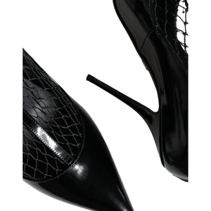 Dolce & Gabbana Black Mesh Patent Leather Heels Pumps Shoes