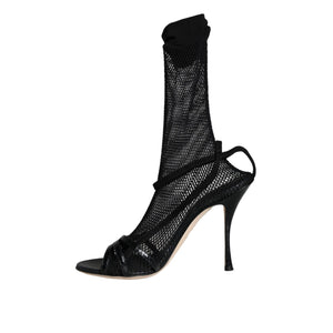 Dolce & Gabbana Black Mesh Stiletto Heels Sandals Shoes