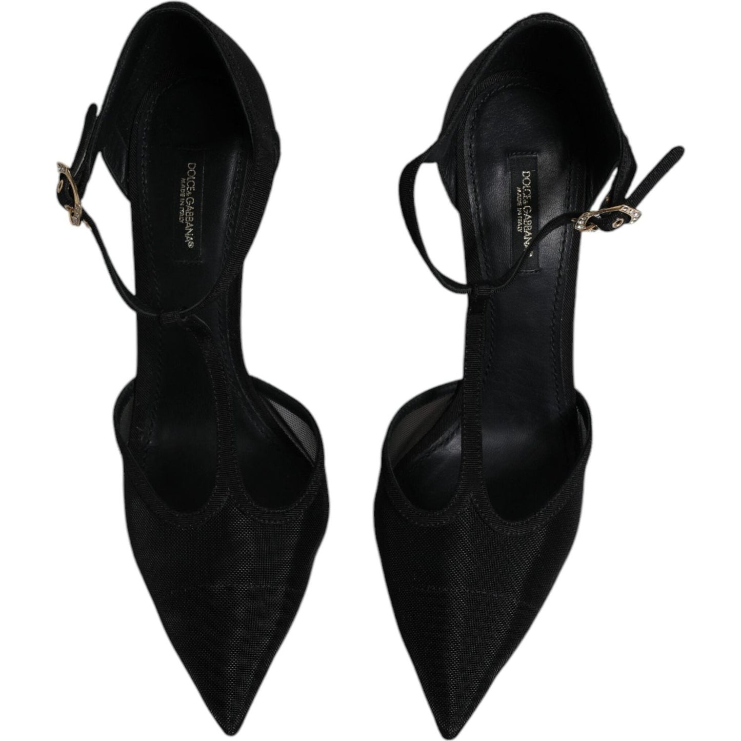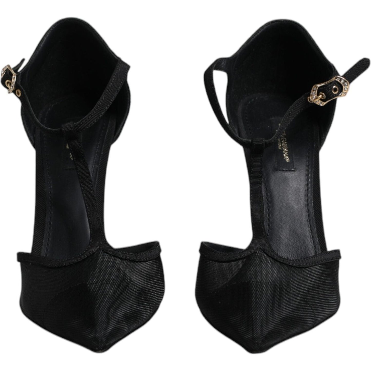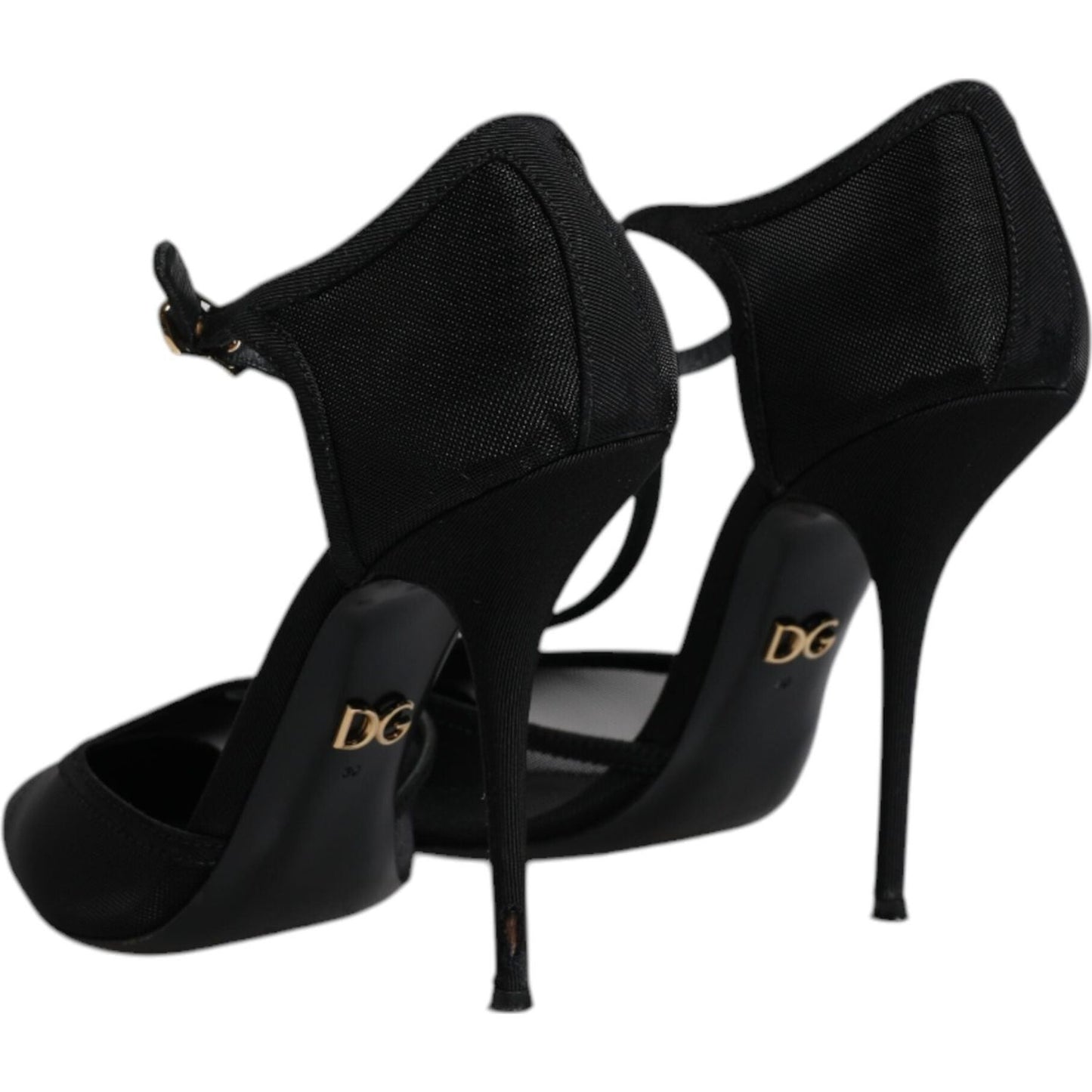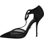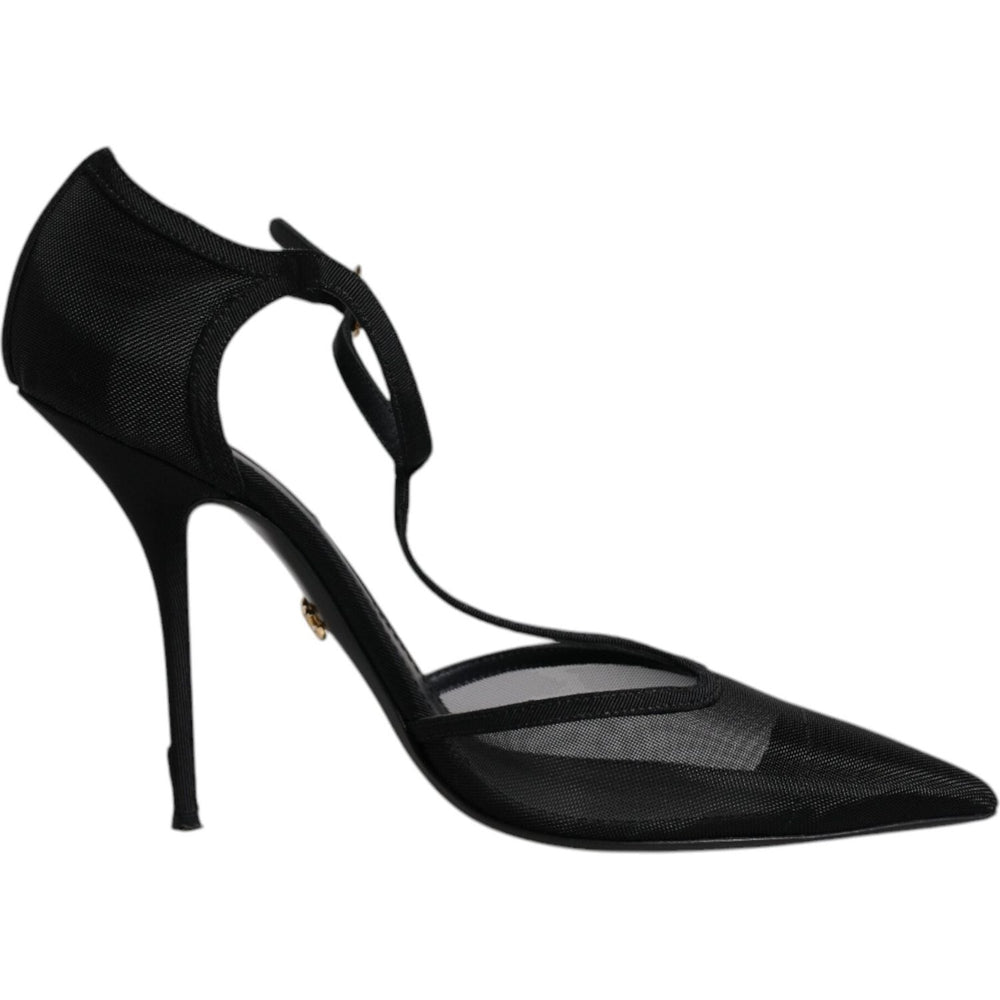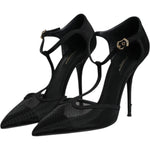 Dolce & Gabbana Black Mesh T-strap Stiletto High Heels Shoes