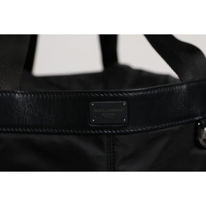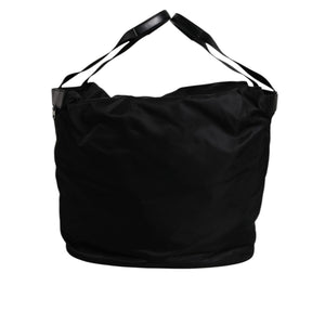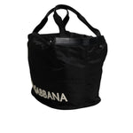 Dolce & Gabbana Black Nylon White Iconic Logo Shoulder Bucket Bag