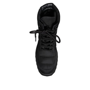 Dolce & Gabbana Black Padded Mid Calf Lace Up Boots Shoes
