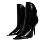 Dolce & Gabbana Black Patent Leather Pointed Ankle Boots Shoes