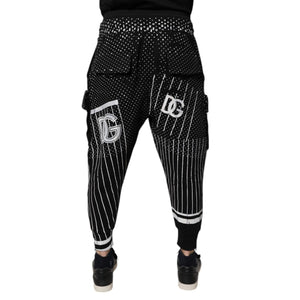 Dolce & Gabbana Black Polka Dot Stripes Cargo Jogger Sweatpants Pants