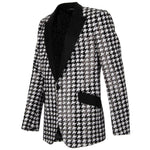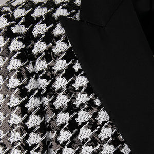 Dolce & Gabbana peak lapel jacket in houndstooth sequin-lined fabric, one-button closure, three front flap pockets and a chest pocket