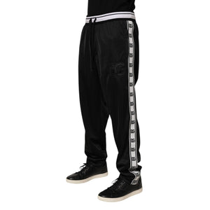 Dolce & Gabbana Black Polyester Logo Stripe Track Jogger Pants