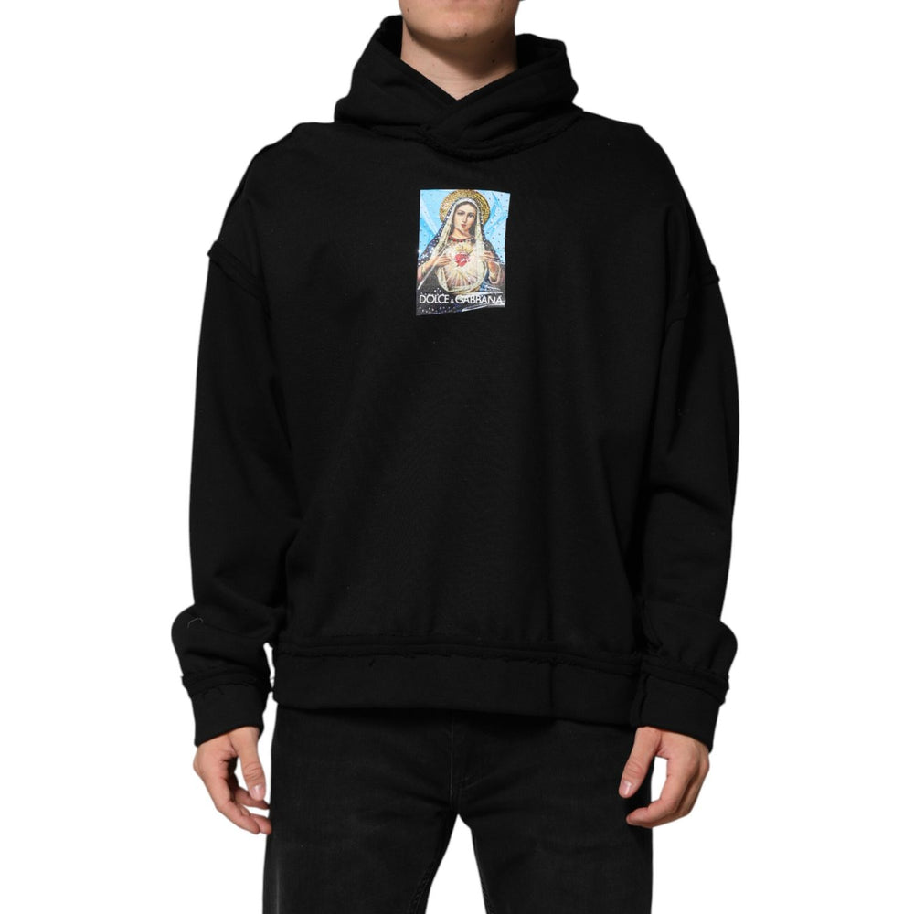Dolce & Gabbana Black Printed Hoodie Crystal Embellished Jacket