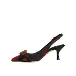 Dolce & Gabbana Black Red Floral Crystal Heel Slingback Shoes