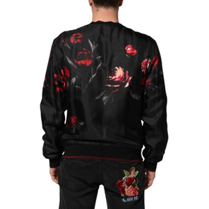 Dolce & Gabbana Black Red Floral Silk Bomber Blouson Jacket