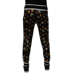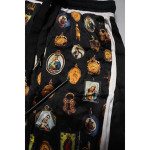Dolce & Gabbana Black Religious Print Silk Men Jogger Pants