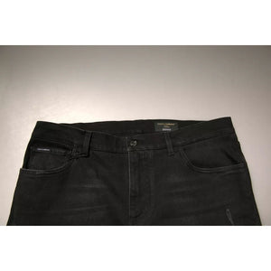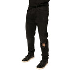 Dolce & Gabbana Black Ripped Logo Cotton Skinny Denim Jeans