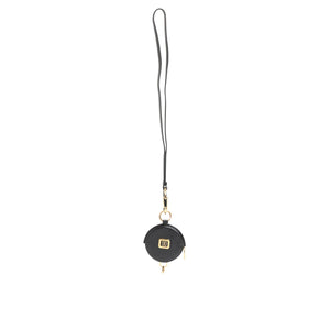 Dolce & Gabbana Black Round Leather DG Logo Coin Purse Lanyard Wallet