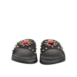 Dolce & Gabbana Black Rubber Sacred Heart Slides Men Beachwear Shoes