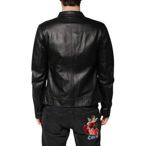 Dolce & Gabbana Black Sheep Leather Biker Full Zip Jacket
