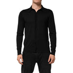 Dolce & Gabbana Black Silk Button Up Lightweight Sweater