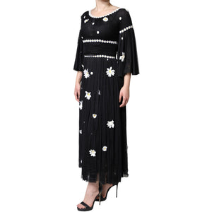 Dolce & Gabbana Black Silk Daisy A-line Long Maxi Dress