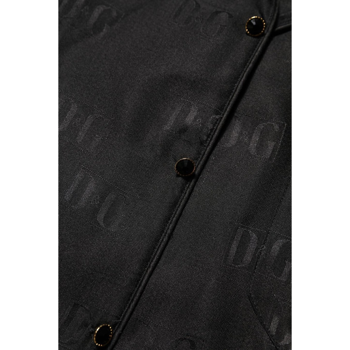 Dolce & Gabbana Black Silk DG Embroidery Long Sleeves Top