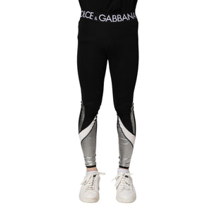 Dolce & Gabbana Black Silver Nylon Skinny Men Leggings Pants