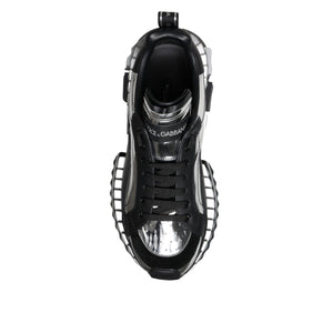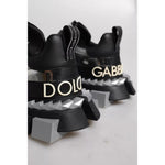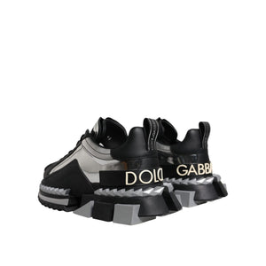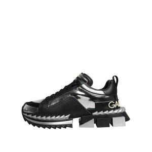 Dolce & Gabbana Black Silver SUPER KING Leather Sneaker Shoes