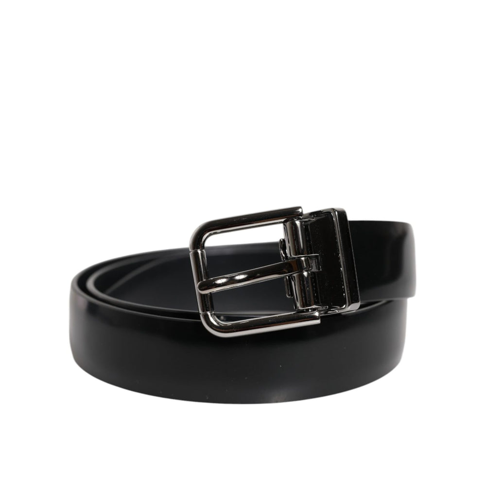 Dolce & Gabbana Black Solid Leather Classic Waist Buckle Belt