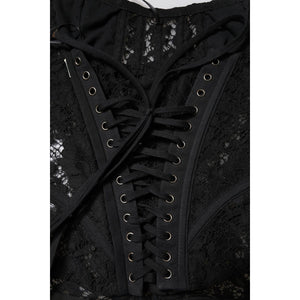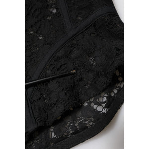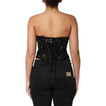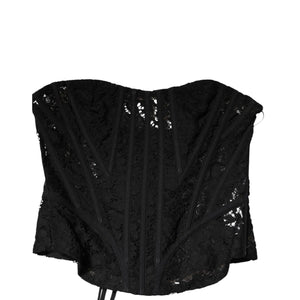 Dolce & Gabbana Black Strapless Floral Lace Bustier Cropped Top