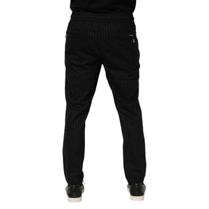 Dolce & Gabbana Black Striped Wool Men Jogger Pants