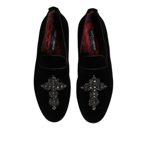 Dolce & Gabbana Black Suede Cross Slip On Loafers Dress Shoes