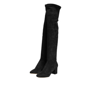 Dolce & Gabbana Black Suede Leather Knee High Boots Shoes