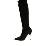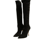Dolce & Gabbana Black Suede Stiletto Knee High Boots Shoes