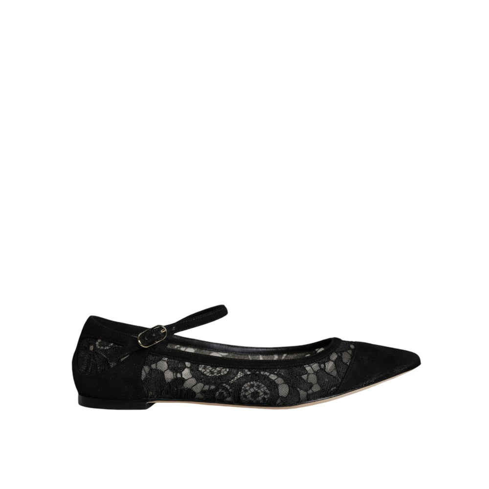Dolce & Gabbana Black Taormina Lace Bellucci Flats Shoes