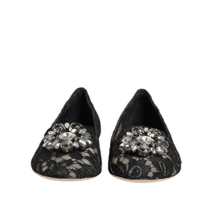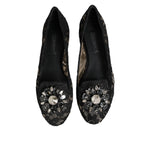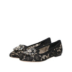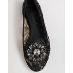 Dolce & Gabbana Black Taormina Lace Crystals Flats Shoes
