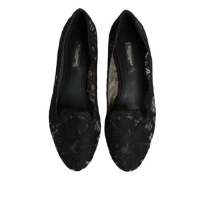 Dolce & Gabbana Black Taormina Lace Slip On Flats Shoes