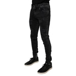 Dolce & Gabbana Black Tattered Cotton Skinny Men Denim Jeans