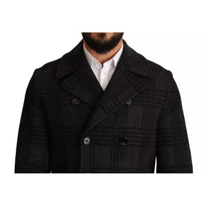 Dolce & Gabbana Black Trench Coat Check Wool Jacket