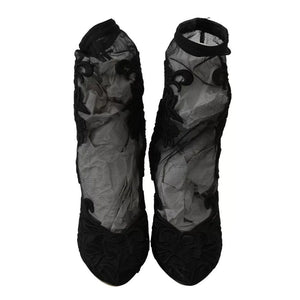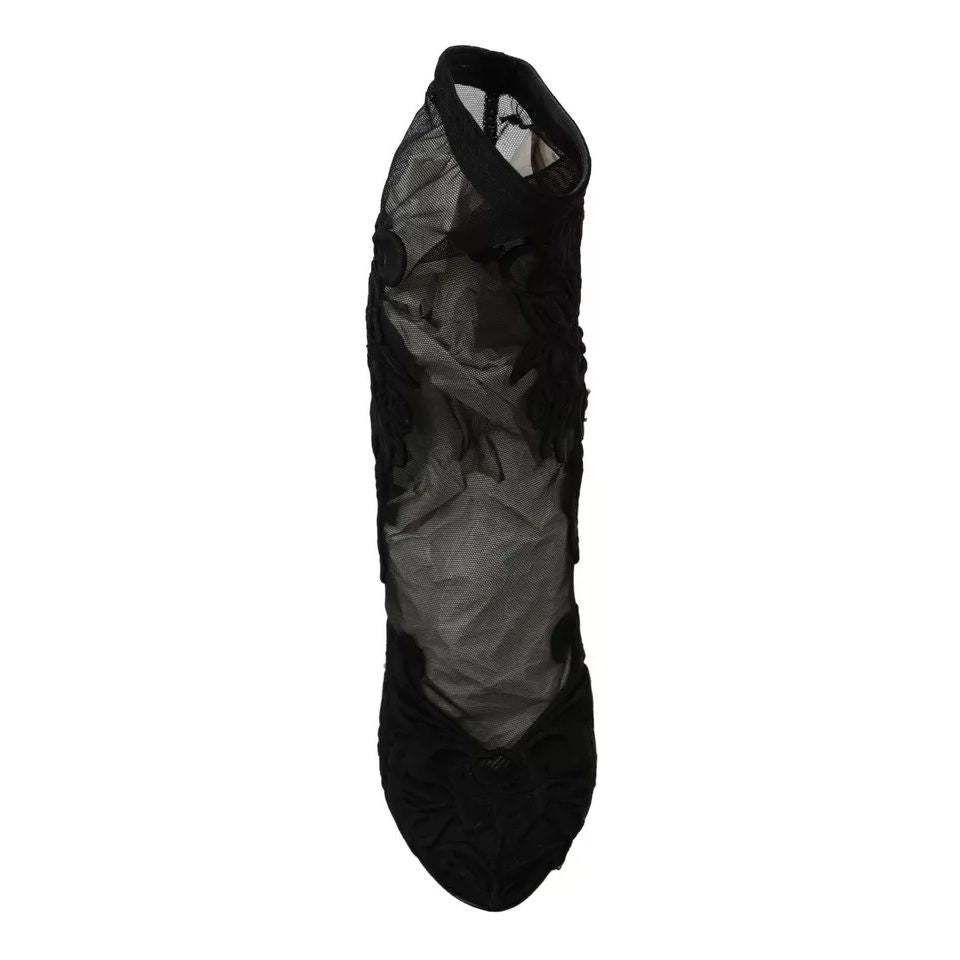 Dolce & Gabbana Black Tulle Stretch Floral Booties Shoes
