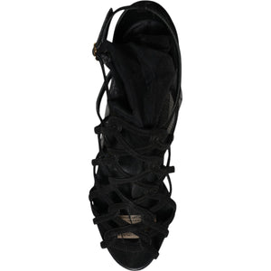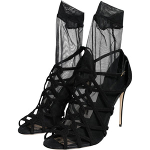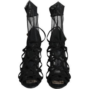 Dolce & Gabbana Black Tulle Stretch Heels Sandals Shoes