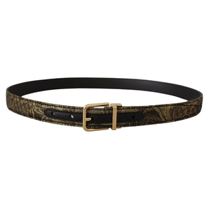 Dolce & Gabbana Black Two-toned Leather Gold Engraved Buckle Belt