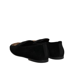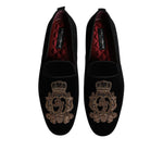 Dolce & Gabbana Black Velvet Gold Crown Mens Loafers Shoes