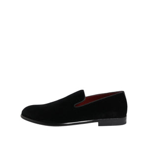 Dolce & Gabbana Black Velvet Loafers Formal Men Dress Shoes