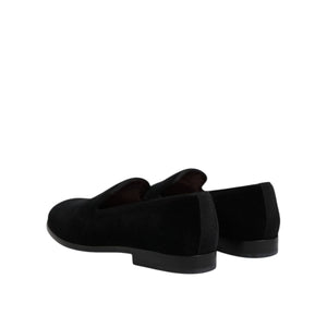Dolce & Gabbana Black Velvet Slip On Loafers Formal Shoes