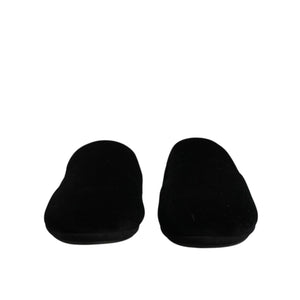 Dolce & Gabbana Black Viscose Velvet Slides Flat Slipper Shoes