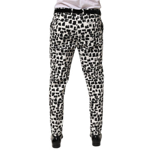 Dolce & Gabbana Black White Abstract Print Cotton Blend Pants