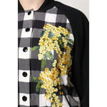 Dolce & Gabbana Black White Check Floral Button Down Jacket