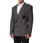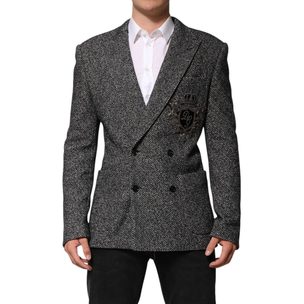 Dolce & Gabbana Black White Double Breasted Men Suit Blazer