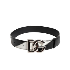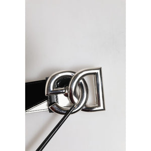 Dolce & Gabbana Black White Leather DG Metal Buckle Belt