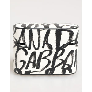 Dolce & Gabbana Black White Leather Monogram Print Logo Holder Airpods Case