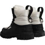 Dolce & Gabbana Black White Padded Mid Calf Lace Up Boots Shoes