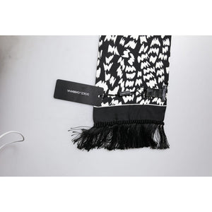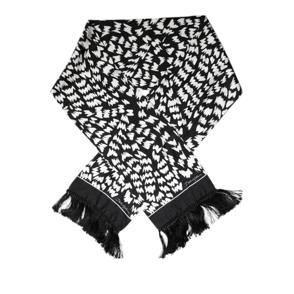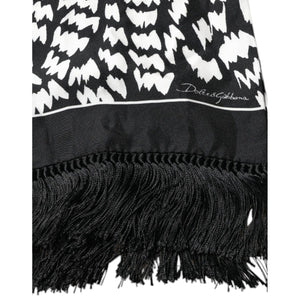 Dolce & Gabbana Black White Patterned Fringes Shawl Scarf